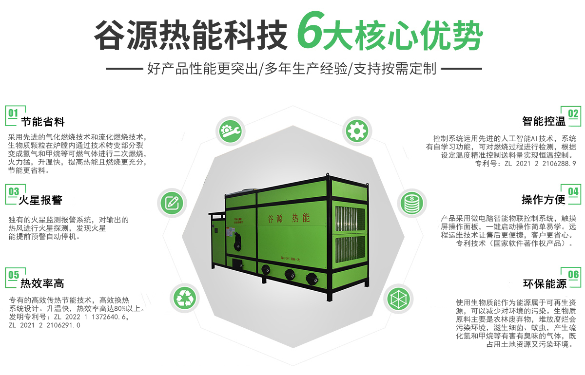 安徽谷源熱能科技有限公司坐落于大別山腳下的紅色革命老區(qū)——六安,是一家專業(yè)從事熱源產(chǎn)品的研發(fā)、生產(chǎn)、銷售、服務于一體的綜合性企業(yè)。 本公司主要生產(chǎn):糧食烘干用生物質(zhì)環(huán)保熱風爐、生物質(zhì)稻殼熱風爐、生物質(zhì)顆粒取暖爐、浴室用生物質(zhì)顆粒爐、涂裝生產(chǎn)線用生物質(zhì)顆粒爐、燃油熱風爐、天然氣熱風爐等熱源產(chǎn)品,公司產(chǎn)品采用微電腦控制,可自動點火,根據(jù)設定溫度自動進料、自動控溫。使用燃料為生物質(zhì)顆粒,屬于可再生資源,相對運行成本低,節(jié)能環(huán)保。 我們以顧客為導向,一直致力于以提高產(chǎn)品質(zhì)量、降低客戶使用成本、節(jié)能環(huán)保為研發(fā)目標,不斷創(chuàng)新。 公司秉承“用心服務,客戶至上;質(zhì)量為本,精益求精!”的經(jīng)營理念,以“節(jié)能環(huán)保”為使命,以“綠色燃料”為保障,以“先進燃燒技術”為支撐,繼續(xù)推進節(jié)能環(huán)保事業(yè)不斷向前發(fā)展。為改善能源結構,打造低碳城市,創(chuàng)建環(huán)境美好資源節(jié)能型社會,做出不懈努力。我們愿意與您真誠合作、共創(chuàng)雙贏,讓我們攜手共創(chuàng)輝煌的明天。竭誠歡迎各界朋友光臨惠顧!